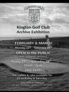 For Kington Golf Club's Centenary Year an Exhibition open to the public in The Clubhouse